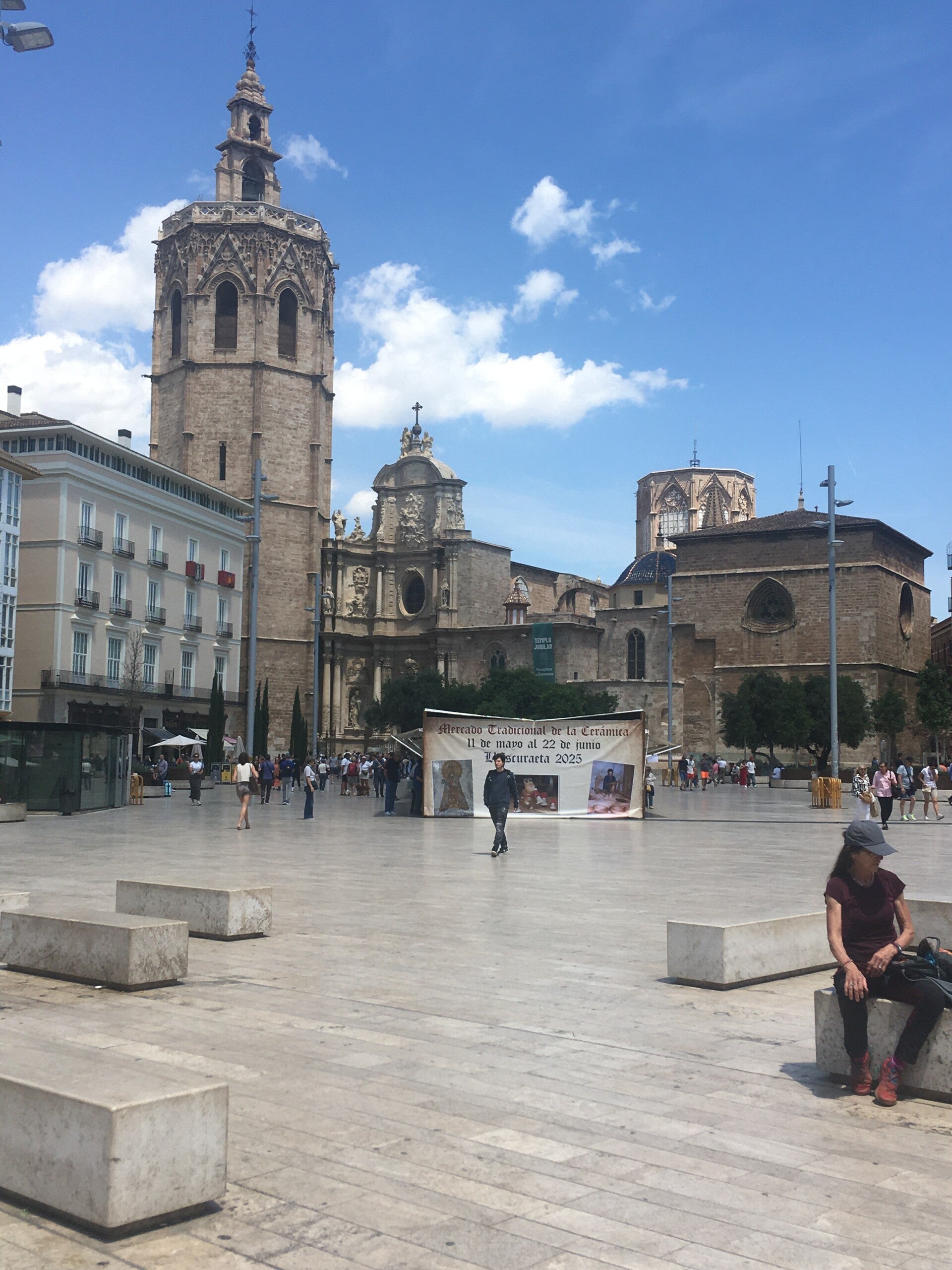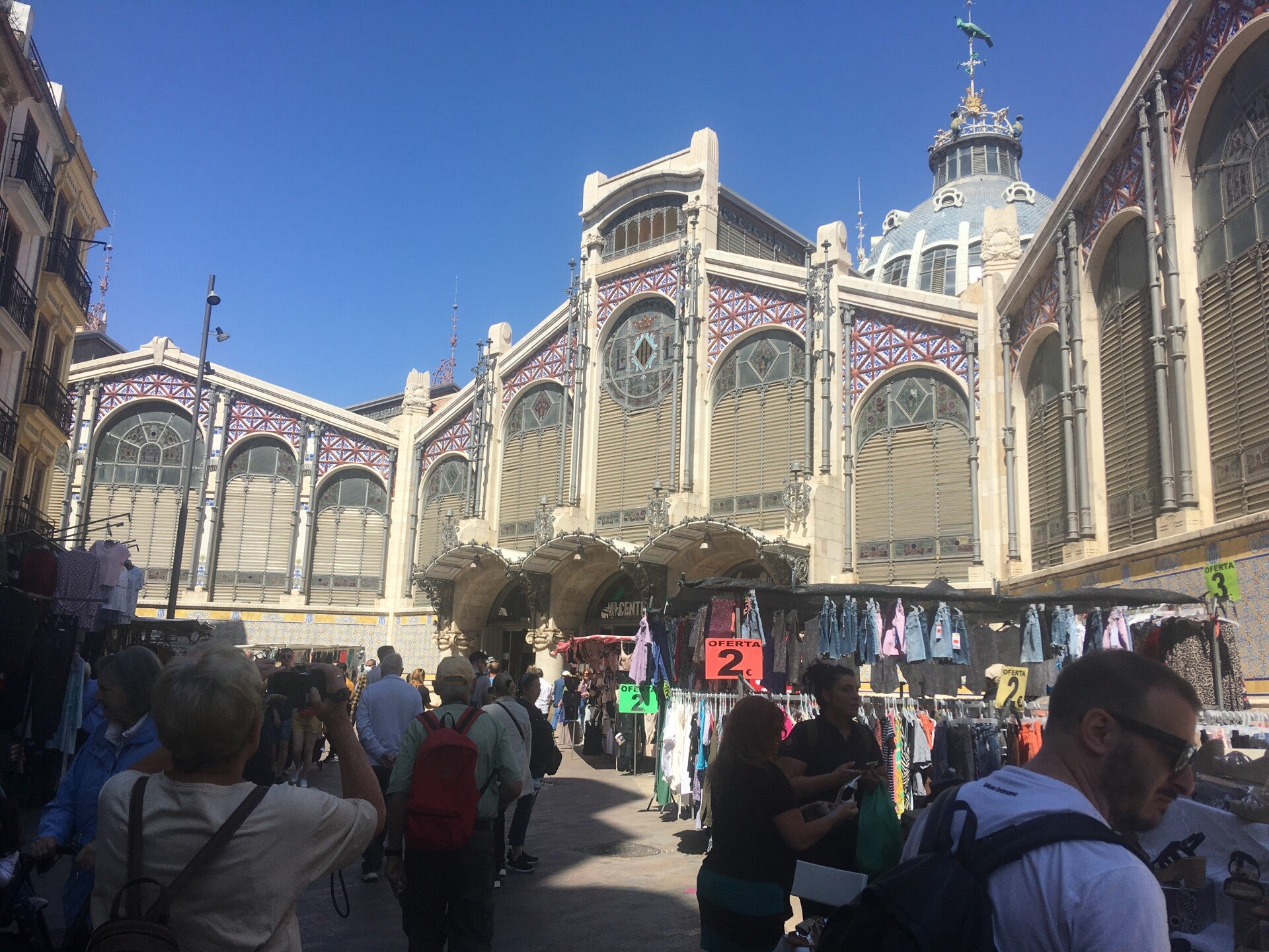 Unser zweiter Tag in Valencia wollen wir in der Altstadt verbringen. Jetzt wo wir einen Überblick haben, ziehen wir morgens um 10 Uhr los mit dem Bus. Von der Endhaltestelle gehen wir zuerst zu dem wunderschönen Jugendstil-Bahnhof, der direkt neben der Stierkampfarena liegt. Dann geht es zum Rathausplatz. Dort sehen wir, dass das Rathaus für Besichtigung geöffnet ist. Nach einer strengen Personenkontrolle dürfen wir in den Prunksaal des Rathauses und auf den Balkon. Danach gehen wir zur zentralen Markthalle und können unser Erstaunen über die Grösse und die tolle Konstruktion der Halle nicht verbergen. Weiter geht es zur Kathedrale, da steht allerdings eine lange Menschenschlange, die auf den Eintritt wartet. Daher verzichten wir auf die innere Besichtigung. Durch mehrere schöne Gassen geht es dann wieder in Richtung Busstation zur Rückfahrt.