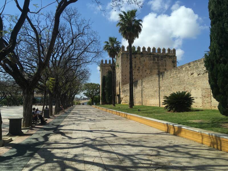 Heute steht die Besichtigung des "Real Alkazar", des königlichen Palastes mit den Gartenanlagen mitten in der Altstadt an. Wir haben wohlweislich schon von zu Hause aus die Eintrittskarten online vor gebucht. Als wir mit dem Bus gegen 10:30 in der Stadt ankommen herrscht schon reger Betrieb am Eingang. Nach flughafenähnlicher Personenkontrolle können wir dann in den Alkazar gehen.