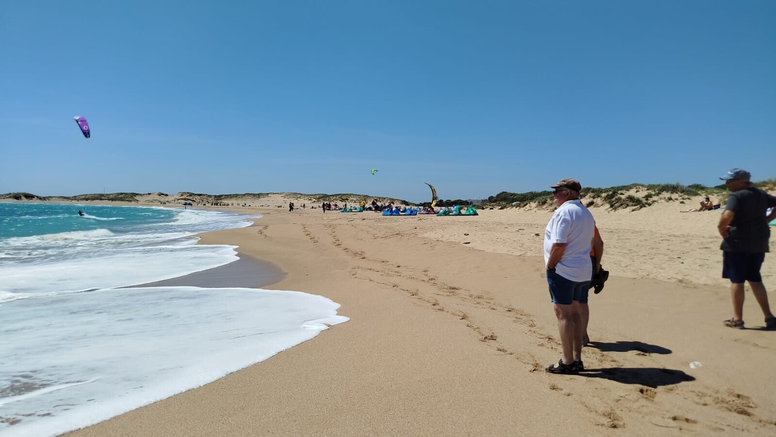 Unser Stellplatz liegt nur durch die Strasse getrennt nicht weit vom Meer entfernt. Es geht ein starker Wind und als wir dann am Nachmittag einen Strandspaziergang gemacht haben, haben wir sehr schön den Kitern und Surfern zusehen können.