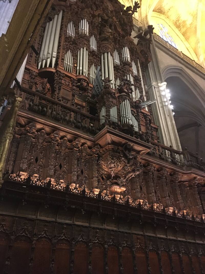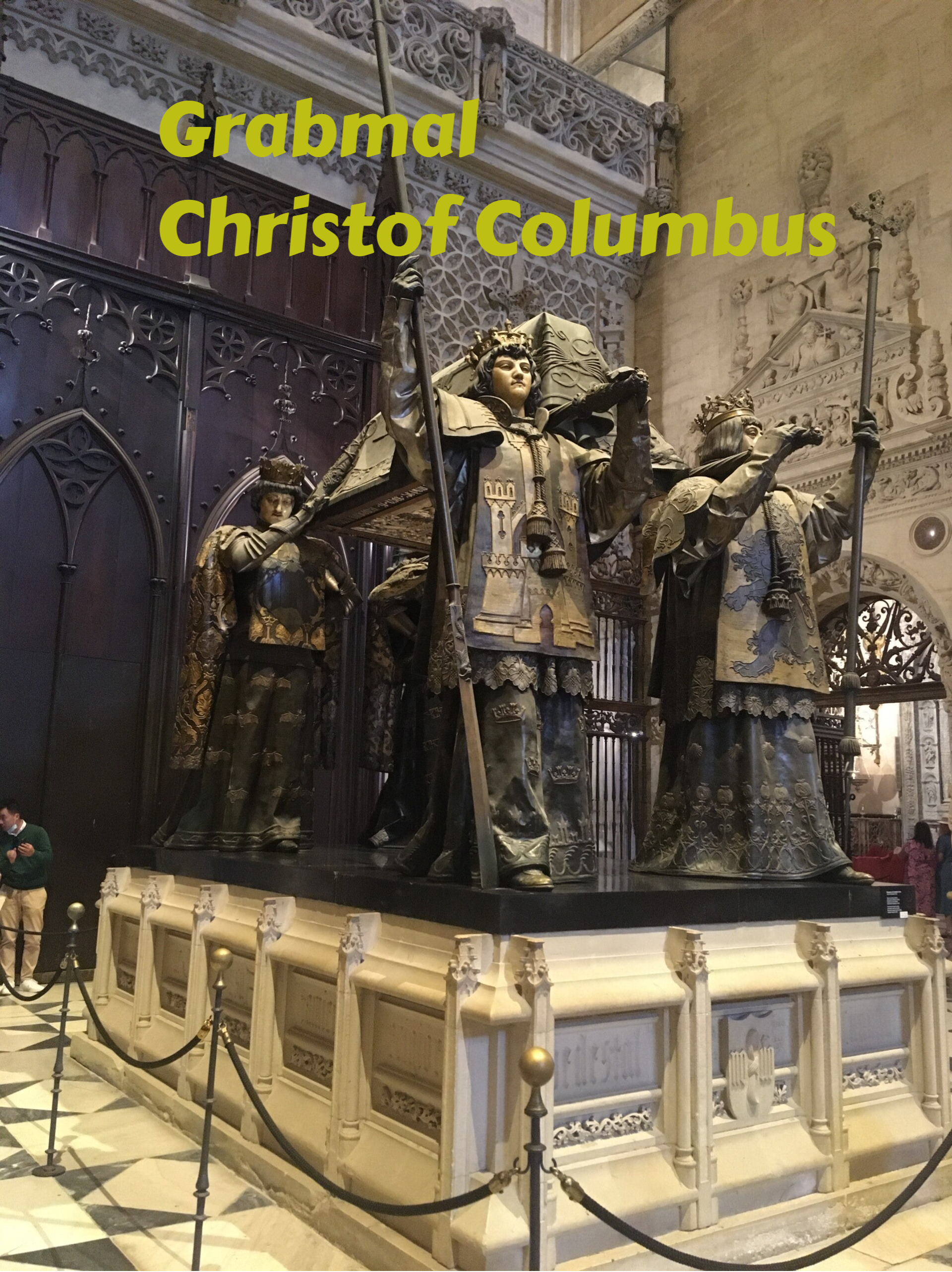 Um 16:20 Uhr durften wir dann in die Kathedrale. Als erstes sind wir auf den Turm La Giralda, der mit 36 innenliegenden umlaufenden Rampen bestiegen werden kann. Man kommt hoch bis zu den Glocken und kann dann Sevilla von oben betrachten. Hochintereressant ist die Dachlandschaft in der Altstadt mit den vielen Terassen und Swimmingpools auf den Dächern, die total verschachtelt sind. Die Kathedrale selbst ist riesig und sehr hoch und soll die 3. größte Kirche der Welt sein. In der Kathedrale ist das Grabmal von Christof Columbus zu besichtigen. Der Hauptaltar ist riesig, 23 m hoch und aus purem Gold mit über 1000 Figuren. Allerdings hat mich die Moskita Moschee-Kathedrale in Cordoba mehr beeindruckt. Aber das ist Ansichtsache.