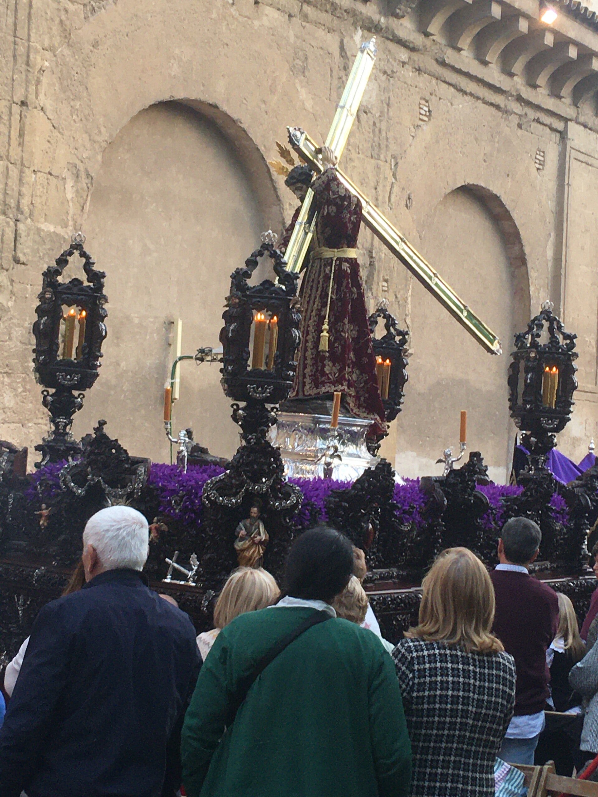 Deshalb stehen wir auf der Straße und warten, bis sich die Schranke wieder öffnen lässt. Letztendlich finden wir alle einen Platz auf dem Stadtbahnen Stellplatz. Gegen Abend gehen wir noch in die Altstadt und erleben auch noch eine große Prozession der Semana Santa.